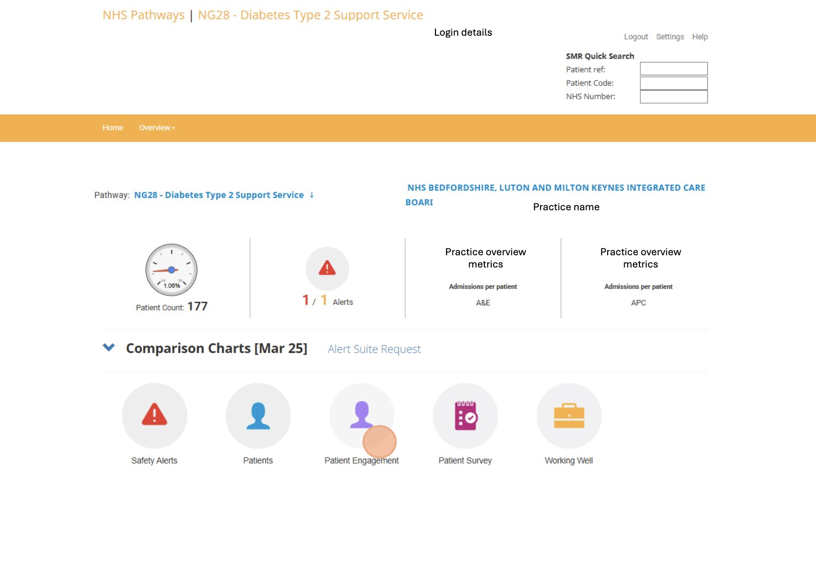 3. Click on the Patient Engagement icon to access the diabetes embrace patient pathway for your practice.
