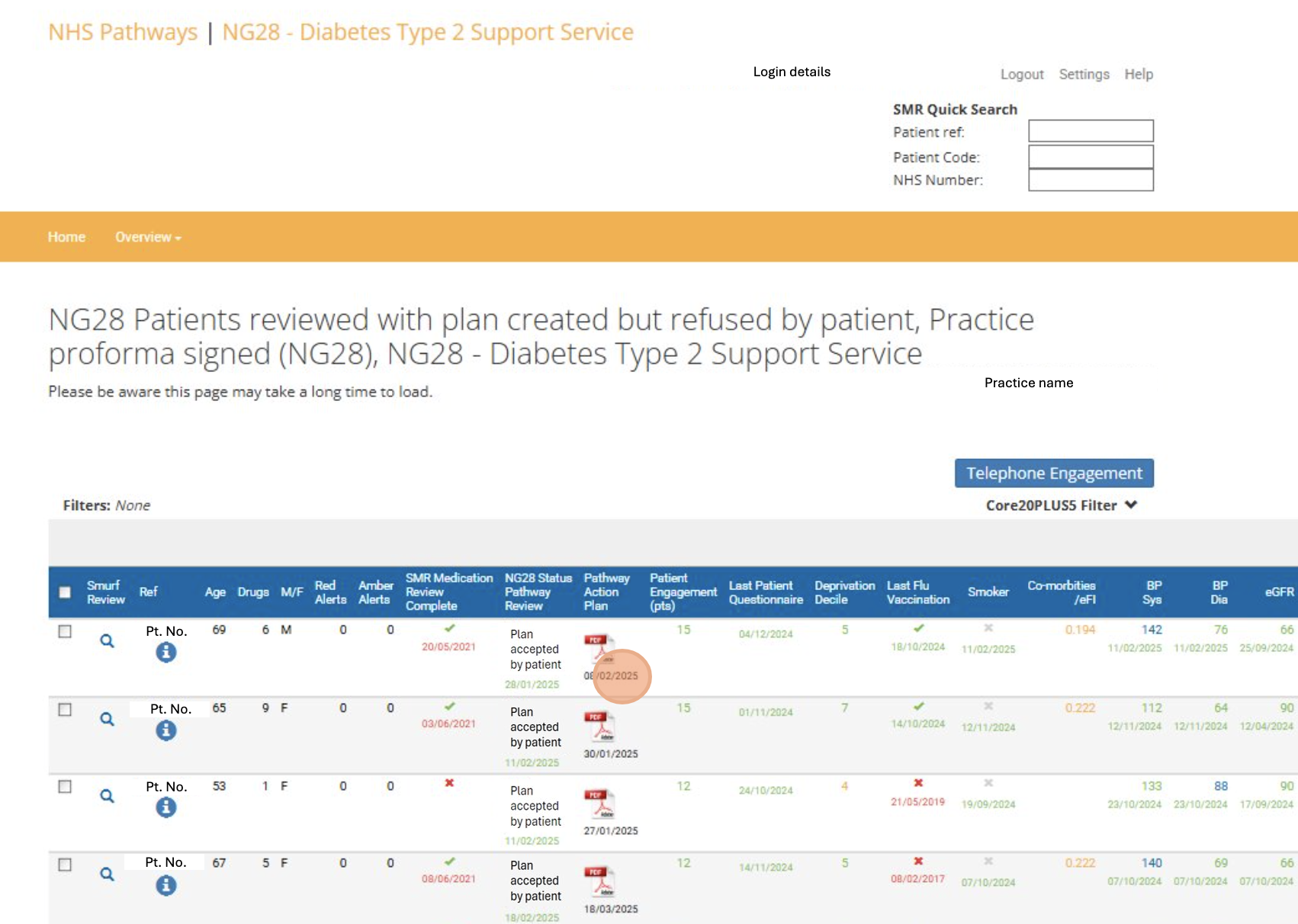 5. The Pathway Action Plan can be accessed by clicking PDF icon for each patient.