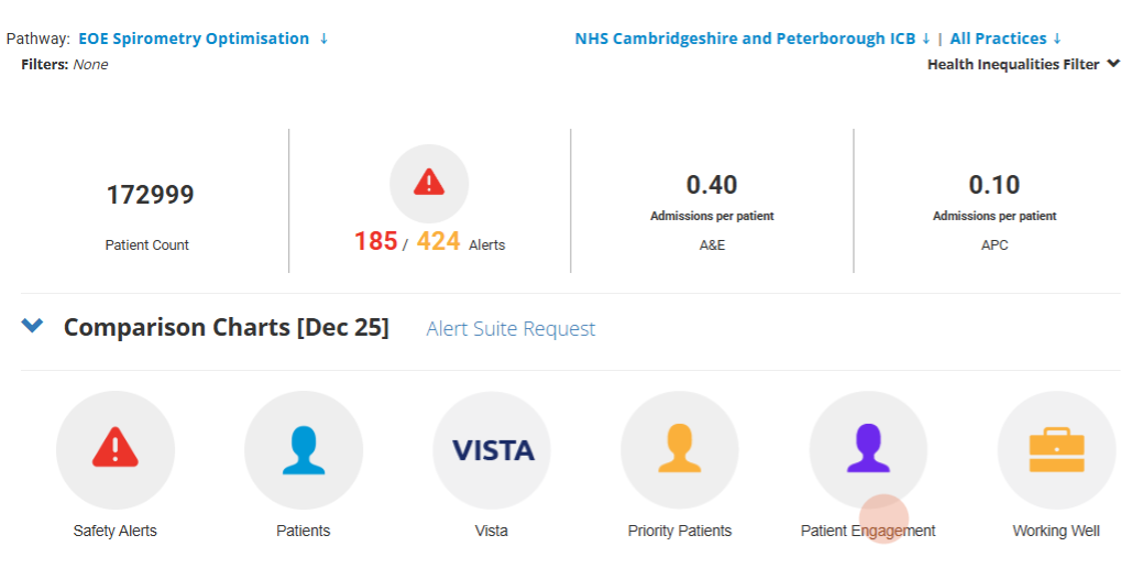 11. The Patient Engagement page breaks the cohort population down into subcategories of patients based on certain criteria. Click View to open a list of all patients for each subcategory. Category can be used to identify and book patients who have chosen to participate in the programme.